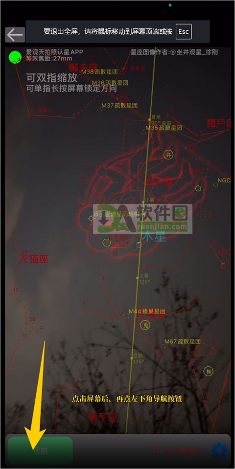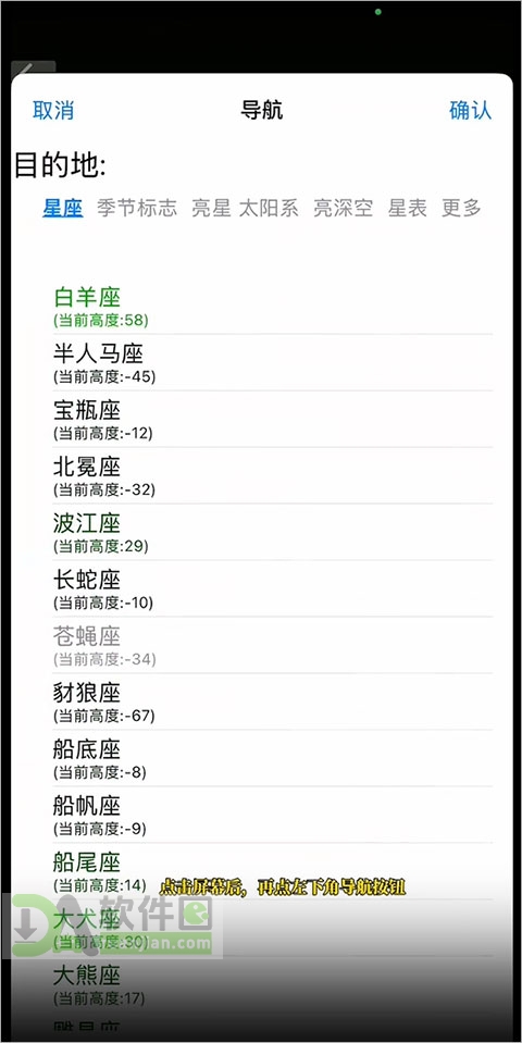 2、对准夜空,等几秒识别完成,点底部【导航】按钮,开始找目标。