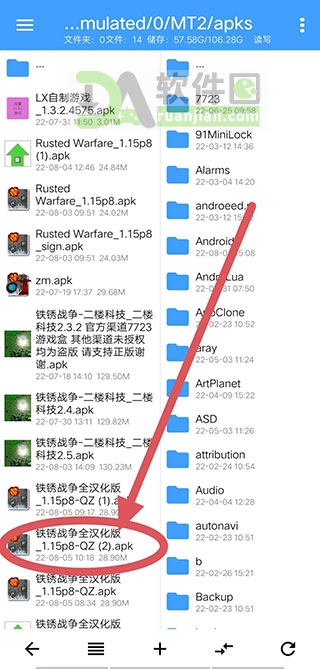 1、打开 NP 管理器,找到你想修改的 APK 文件(比如“铁锈战争”)。