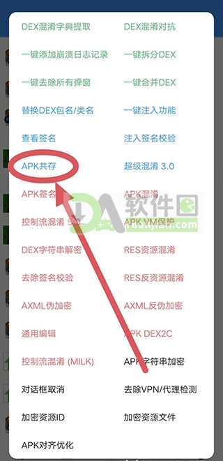 3、在功能列表里选择【APK共存】,这其实是改包名的一种实现方式。