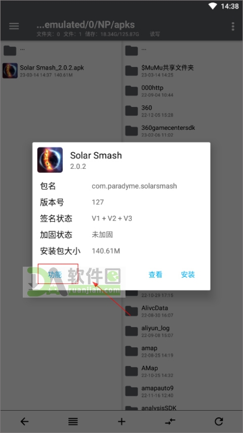 2、点击该 APK,进入后点顶部【功能】按钮。