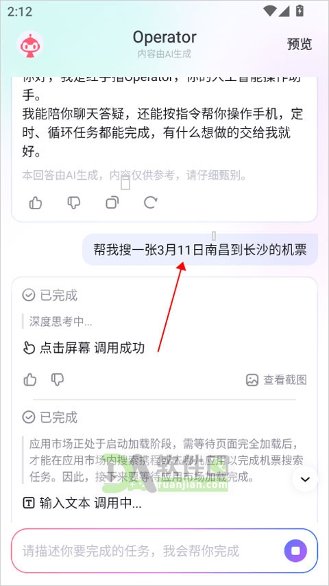 【一句话搞定复杂事】界面清爽无干扰,响应快如闪电。你说“帮我订明天去上海的高铁”,它就自动查班次、选座位、填信息,省下你来回切换App的麻烦。