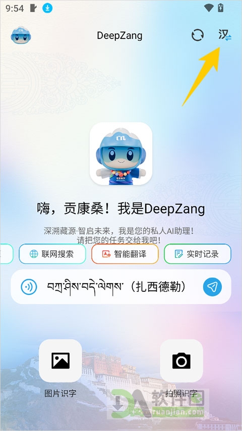 1、首次打开App,系统会根据你手机的地区设置自动匹配语言。如果你身处非藏语区但希望使用藏语界面,只需点击右上角的语言切换按钮,一键切回藏文模式;