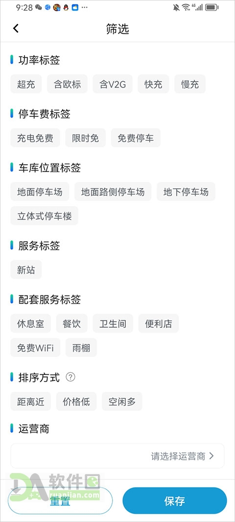 4、想更精准找桩?点右侧【筛选】按钮,可按快充/慢充、运营商、价格区间、空闲数量等条件过滤,快速锁定目标;
