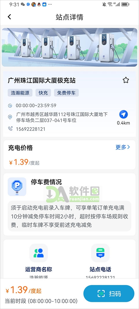 5、选好桩后,跟着App内置导航开车前往,到达后点击对应桩位进入扫码界面,对准二维码一扫,充电即刻开始!