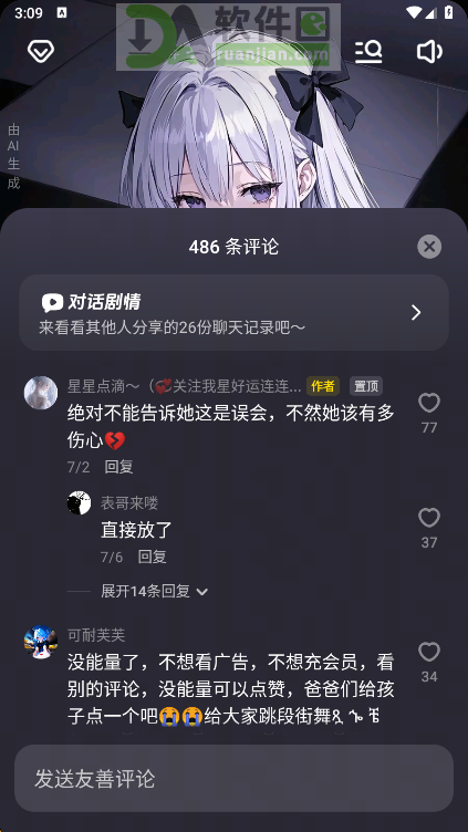 4、每个热门角色下方都有其他用户的精彩评论和剧情分享,逛逛评论区或许能发现新玩法;