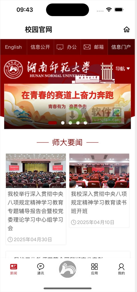 2、登录后进入首页,第一时间掌握校内最新要闻、通知公告及重要动态,资讯尽在掌握;
