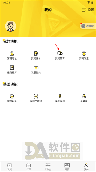 登录时选“货主”身份,进入首页后点底部【我的】,找到“我的熟车”这个选项并点进去。