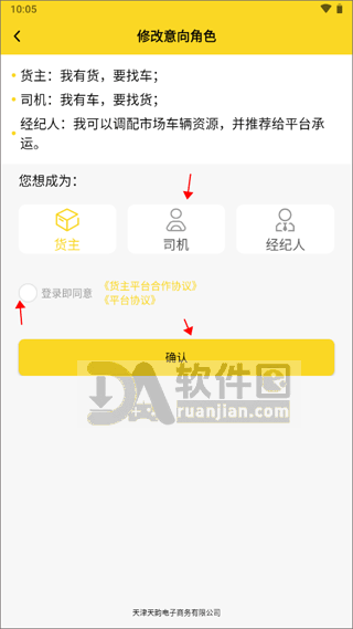 选中“司机”,勾上“登录即同意”的框,确认后系统就会自动切换成司机视角。
