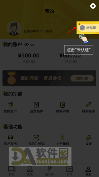 先以司机身份登录,进到【我的】页面。