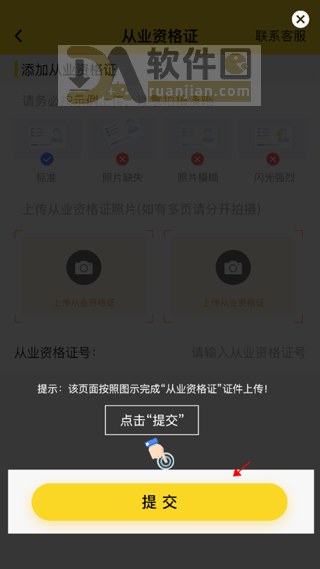 按要求上传证件照片,检查无误后提交审核。