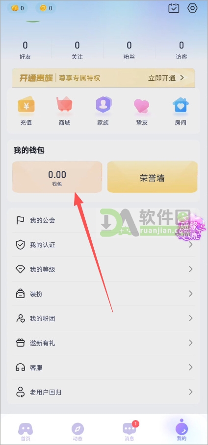 2、找到「钱包」入口,里面就有「实名认证」选项。