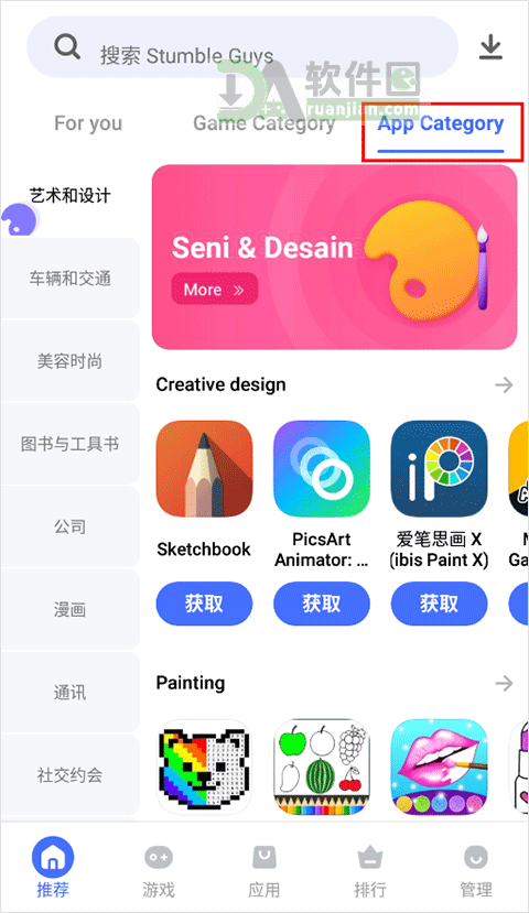 首页有推荐、分类、排行榜、最新上架等多个入口,找应用不用瞎翻。不管是社交、工具、摄影还是硬核游戏,分类清晰,点进去就能看到详情和用户评价。