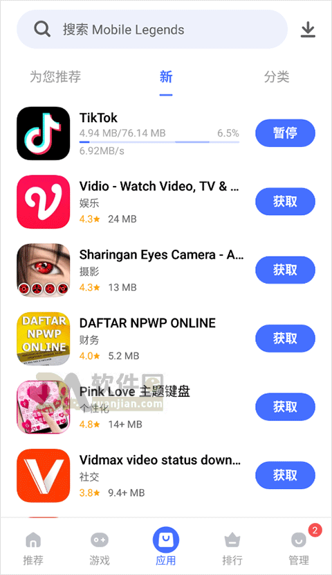 2、除了软件,还提供高清壁纸、热门铃声、短视频素材等多媒体资源,满足个性化装扮需求。