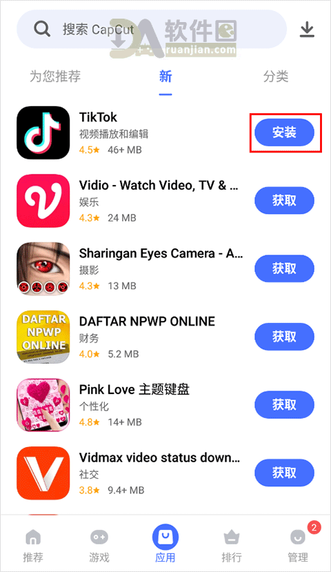 2、切换到“应用”标签,还能按“最新上线”“热门排行”“详细分类”进一步筛选,找软件更精准。