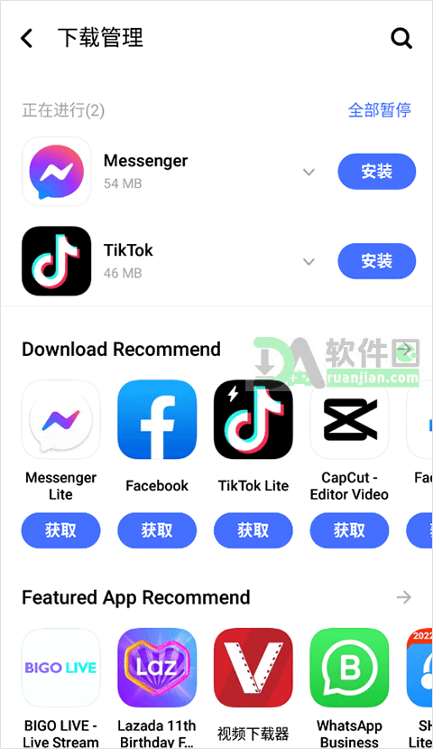 5、所有下载任务统一在“下载管理”里显示进度,暂停、重试、查看历史记录都很方便。