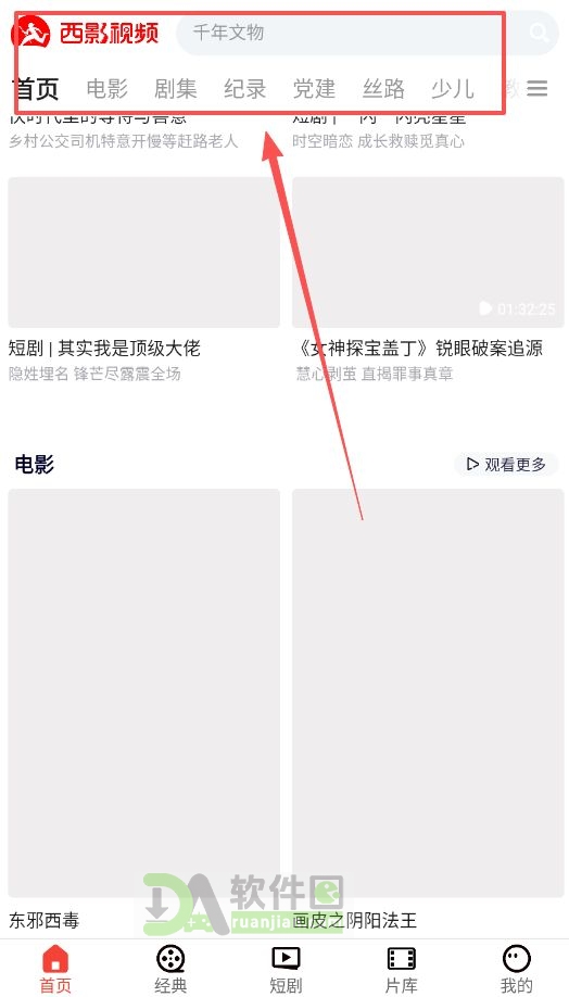 1、首次打开建议先逛逛首页各频道——电影、纪录片、党建、丝路……快速了解内容布局,找到自己感兴趣的板块。
