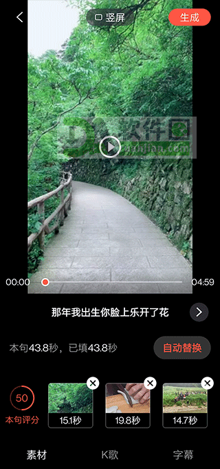 5.点击「生成」,等待片刻,一条带字幕、配乐、转场的完整视频就做好了!