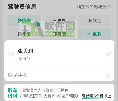 3、填写驾驶员信息,注意看清楚取车时要带哪些证件(比如身份证、驾照);
