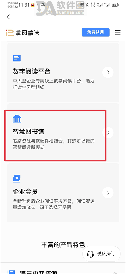 掌阅精选支持接入企业或机构数字图书馆,员工可免费借阅内部书库: