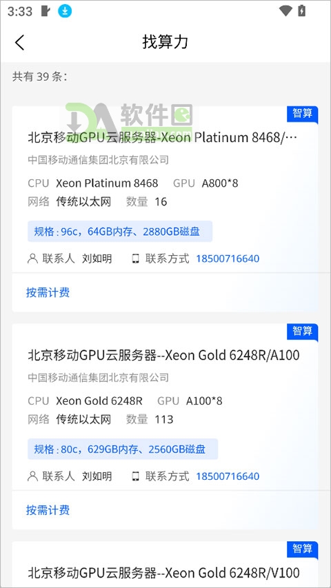 2、在新界面中选择所需的算力服务器,点击电话图标进行咨询或直接下单购买;