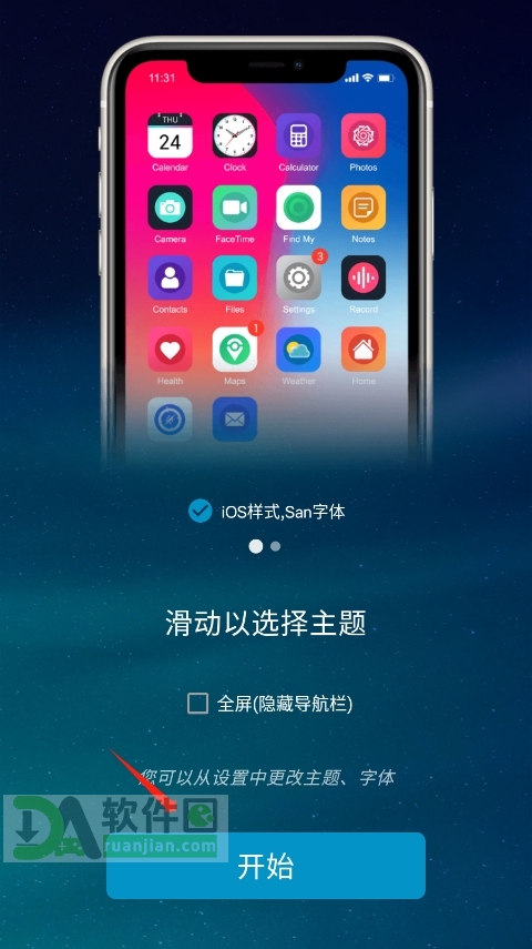 3、接着滑动选择一个主题风格,确认后继续点“开始”。