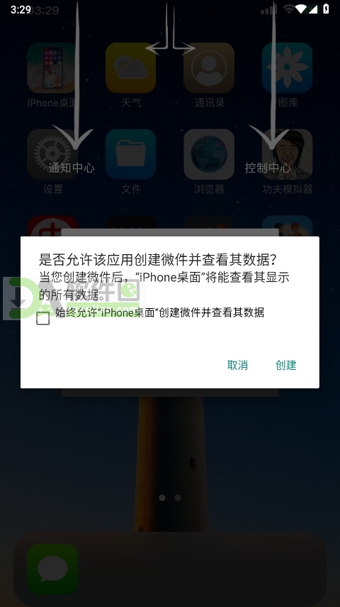 4、按提示点击“创建微软”(实际为设置默认启动器),将 iPhone Launcher 设为默认桌面。