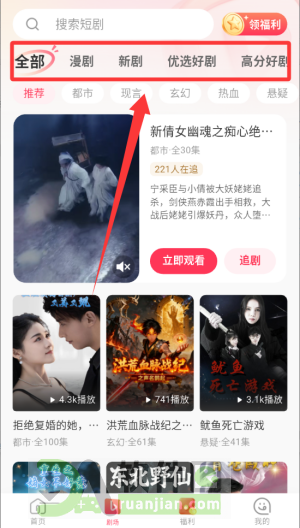 2、页面顶部有清晰的分类标签,比如“甜宠”“复仇”“职场”,按兴趣点进去就行。