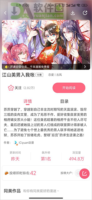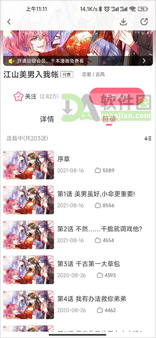 4、选中一部热门漫画,进入详情页先看简介和目录,判断是否合口味。