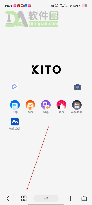 1、打开可拓浏览器,在屏幕底部找到那个三横线或三点组成的“菜单”按钮,点一下。