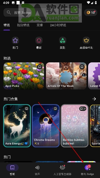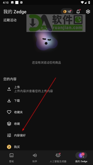 1、打开App,点底部菜单栏的“我的Zedge”,进入你的个人主页。