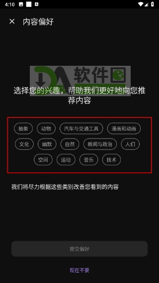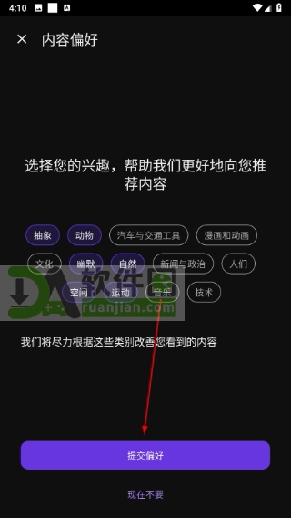 4、选好后点“提交偏好”,系统就会记住你的口味,以后首页推荐的内容更合你眼缘,刷起来更顺心。