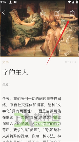 3.遇到特别打动你的内容?点击右上角的【分享】按钮,就能把它转发出去;