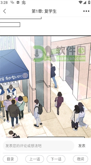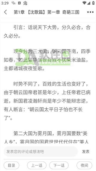 3. 阅读时,点击屏幕唤出工具栏,可通过【目录】跳转章节,或使用底部的【上一话】/【下一话】按钮无缝切换,阅读节奏完全由你掌控;