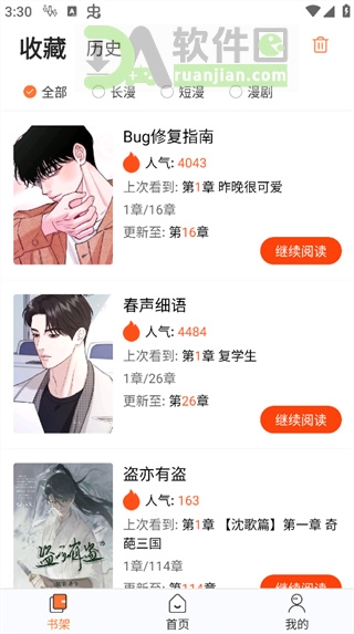 4. 遇到喜欢的作品?点击右上角的【收藏】按钮,它就会自动同步到你的【个人书架】,方便下次继续追更,再也不怕找不到看到哪一话。