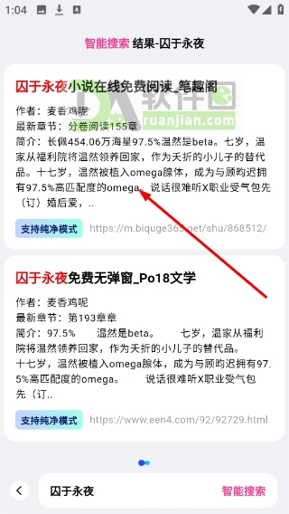 3.搜索结果页会列出匹配的小说,包含封面、简介、评分和热度值,点击你感兴趣的那一本,就能进入详情页开始阅读;