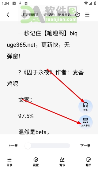 4.在阅读界面,你可以点击【听书】按钮开启AI语音朗读,解放双眼;如果喜欢这本书,别忘了点【加入书架】,方便下次继续追更。
