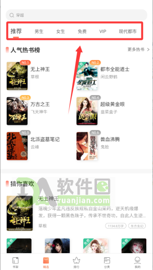 1.打开App后,点击顶部的【分类】或【书城】菜单,进入小说分类页面;
