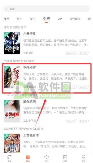 2.在分类列表中,找到你感兴趣的小说(图中红框标出),点击进入作品详情页;