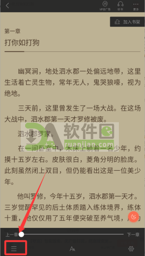 4.在阅读时,点击屏幕中央唤出菜单栏,左侧的【目录】按钮可快速跳转章节,方便回看或追更。