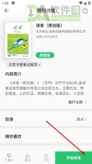 3.在期刊详情页查看简介、目录及出版信息,确认后点击右下角的【开始阅读】按钮,进入阅读界面;