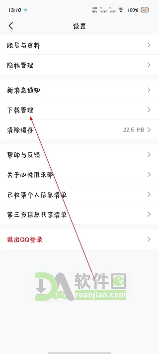 2.在设置菜单中找到并点击【下载管理】或【应用相关设置】;