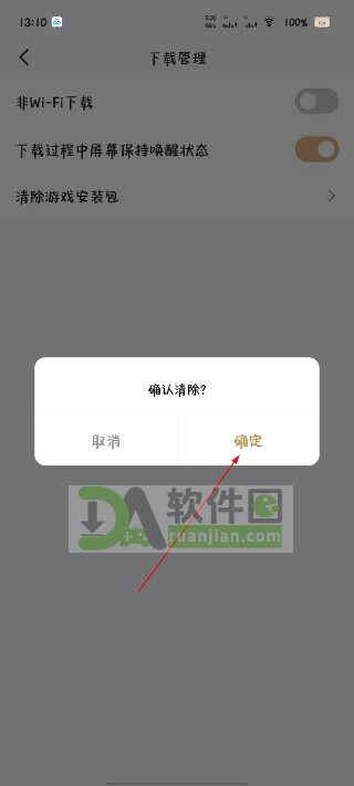 3.进入下载管理页面后,点击【清除游戏安装包】按钮,系统将弹出确认提示框;