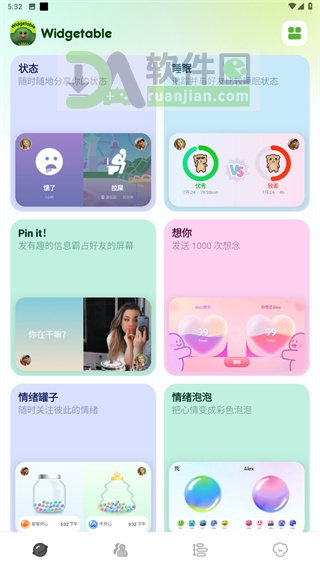 Widgetable安卓中文版是一款主打个性化桌面与锁屏体验的应用,融合了互动、美化和实用功能。它不只是换个图标或壁纸那么简单,而是把手机变成你和朋友、恋人之间的小天地——养宠物、种植物、互发悄悄话,甚至一起走路打卡,都能在锁屏上完成,既有趣又带着点小温暖。