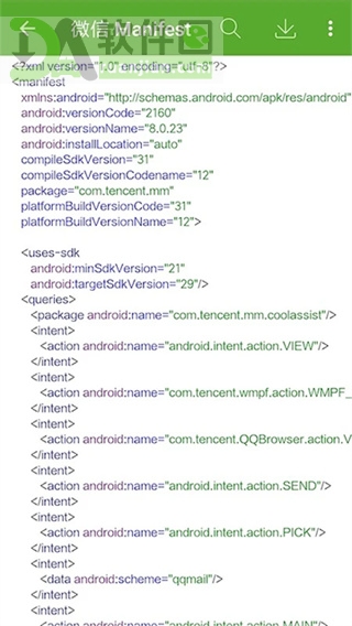 可直接查看目标App的Java源码(smali)、资源文件、AndroidManifest等,代码高亮显示,支持导出或分享到微信等平台,方便团队协作或存档。