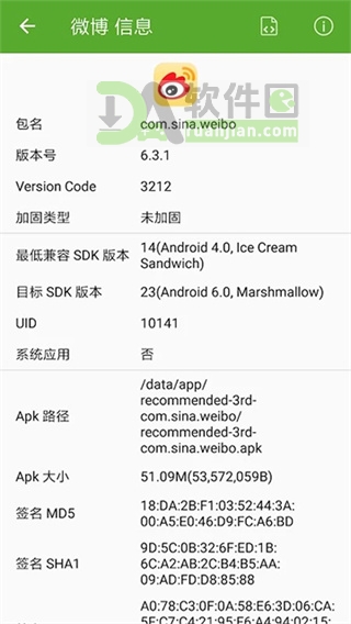 3、在应用详情页中,能清楚看到版本号、包名、安装路径等核心信息;