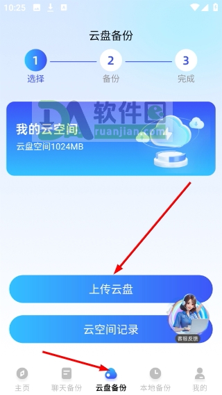 4、进入“云盘备份”页面,可查看当前云存储使用情况,点击【上传至云盘】将文件安全存入云端,便于多设备访问或换机恢复。