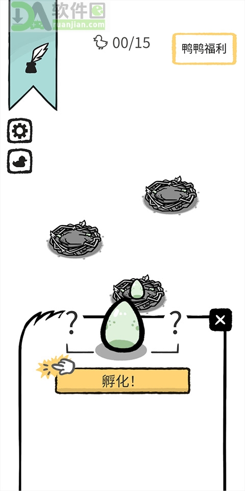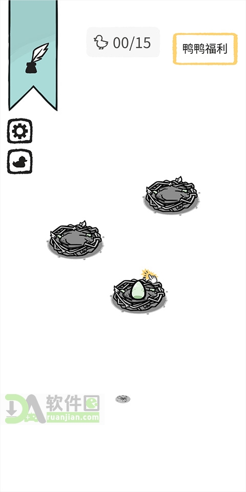 1、初始阶段提供三个孵化巢穴,其中一个巢穴里已经存在一枚鸭蛋,玩家需要点击这枚鸭蛋