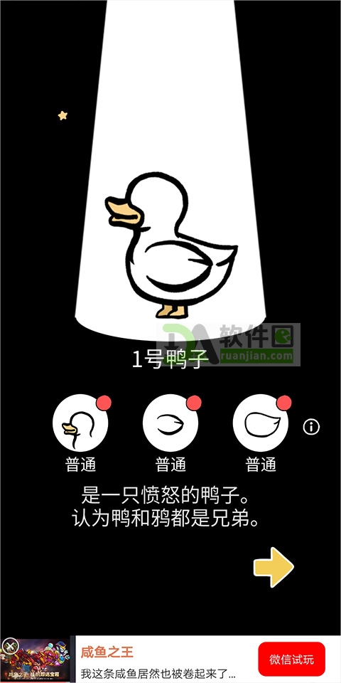 3、这时会孵化出一只普通却显得暴躁的鸭子,它总是坚持认为鸭子和乌鸦是同族兄弟