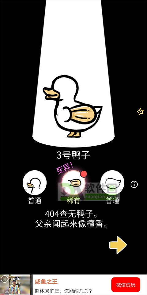 2.多样变异系统:鸭子各个身体部件都有可能发生变异,不同的外观变化让游戏体验更加精彩纷呈。