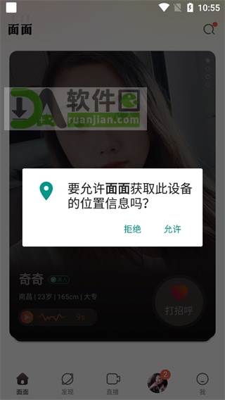 4、授权获取位置信息(用于同城推荐),即可开始浏览和匹配。